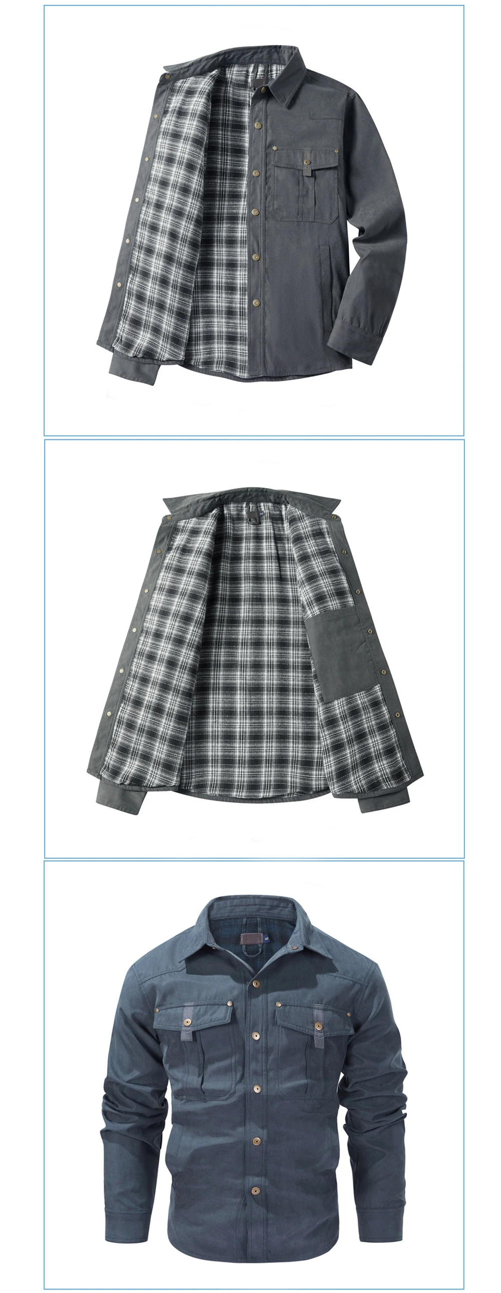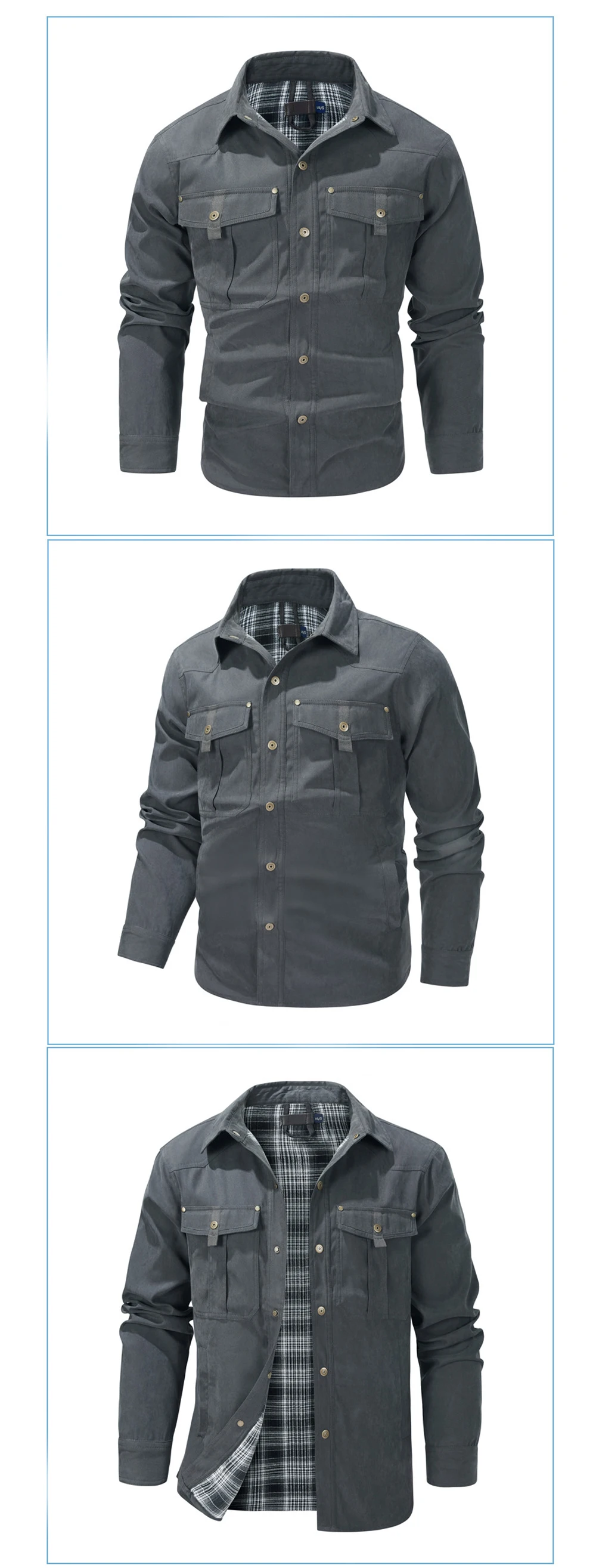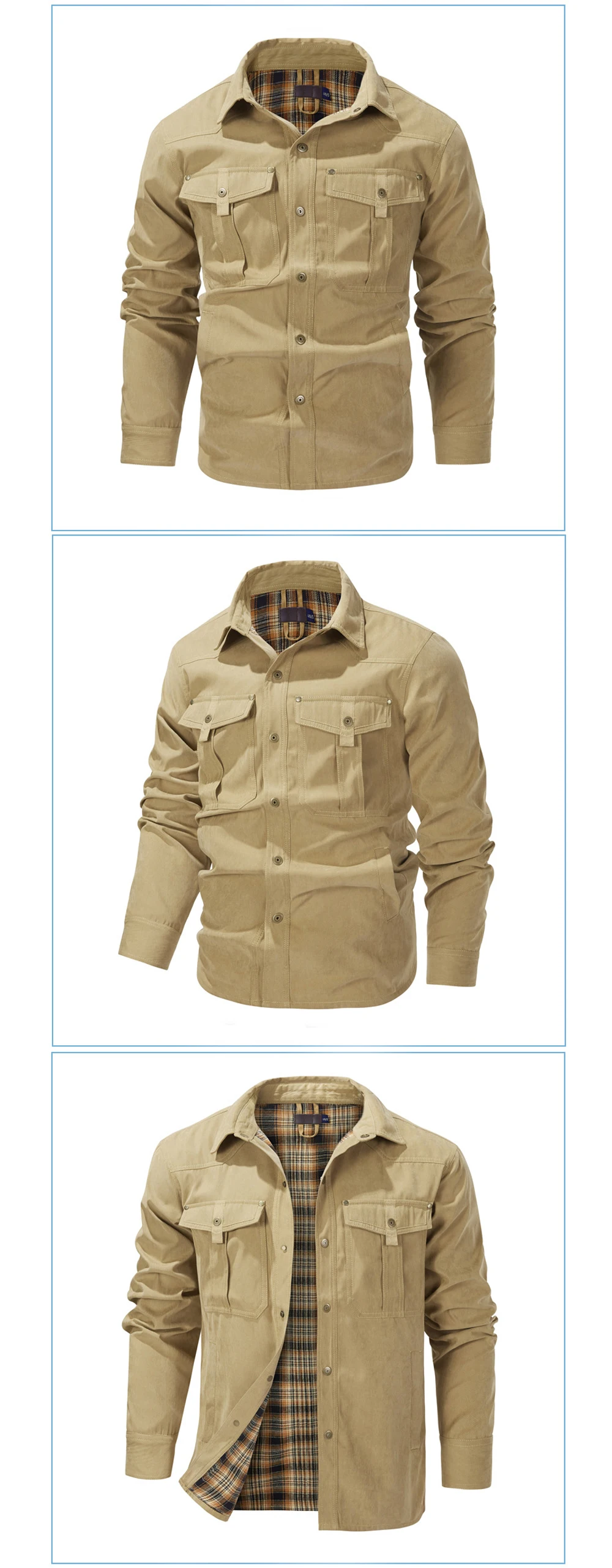 Spring Autumn Mens Flannel Plaid Shirt Jacket Casual Men Retro Lapel Cotton Warm Shirts Men Tactical Windbreaker Jacket Clothing