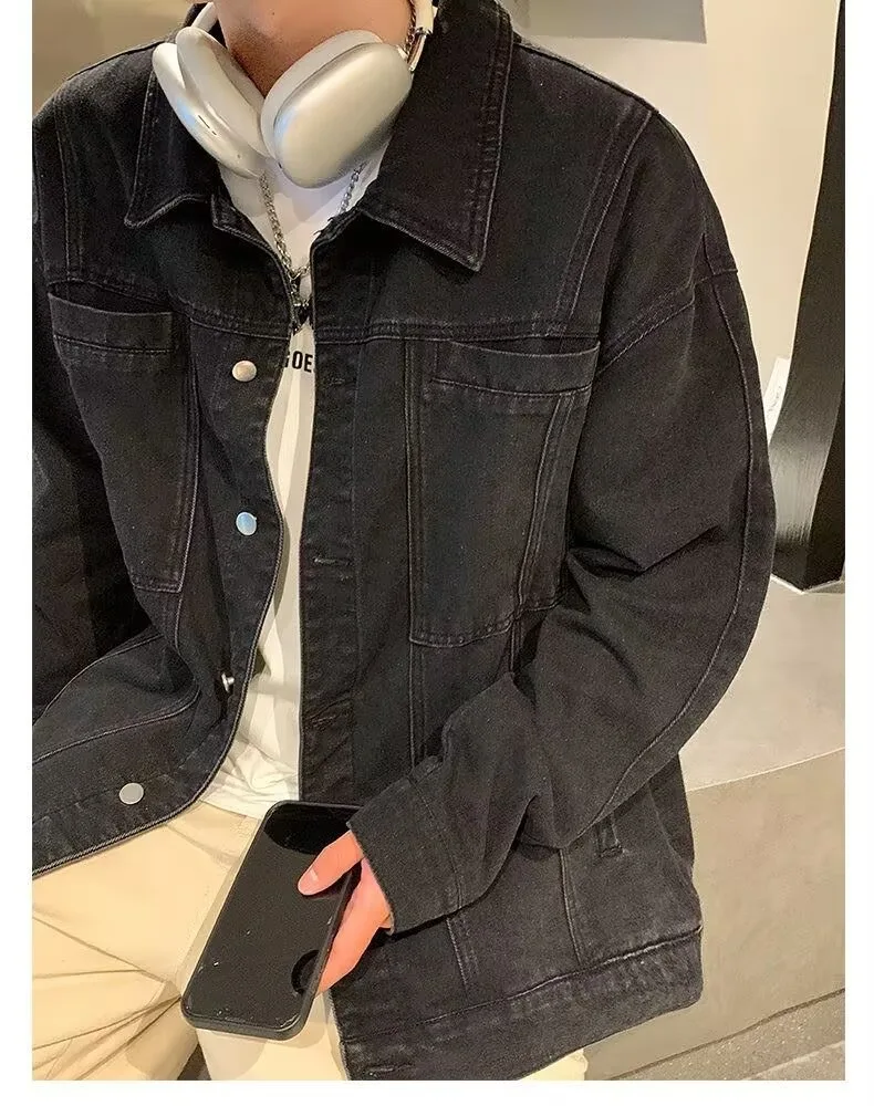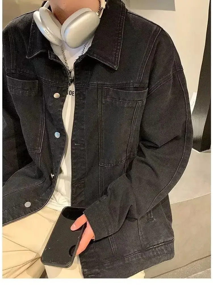 Trendy Men's Denim Jacket Autumn Winter, Ripped & Patchwork Design, Oversized Fit, Urban Street Style, Unisex