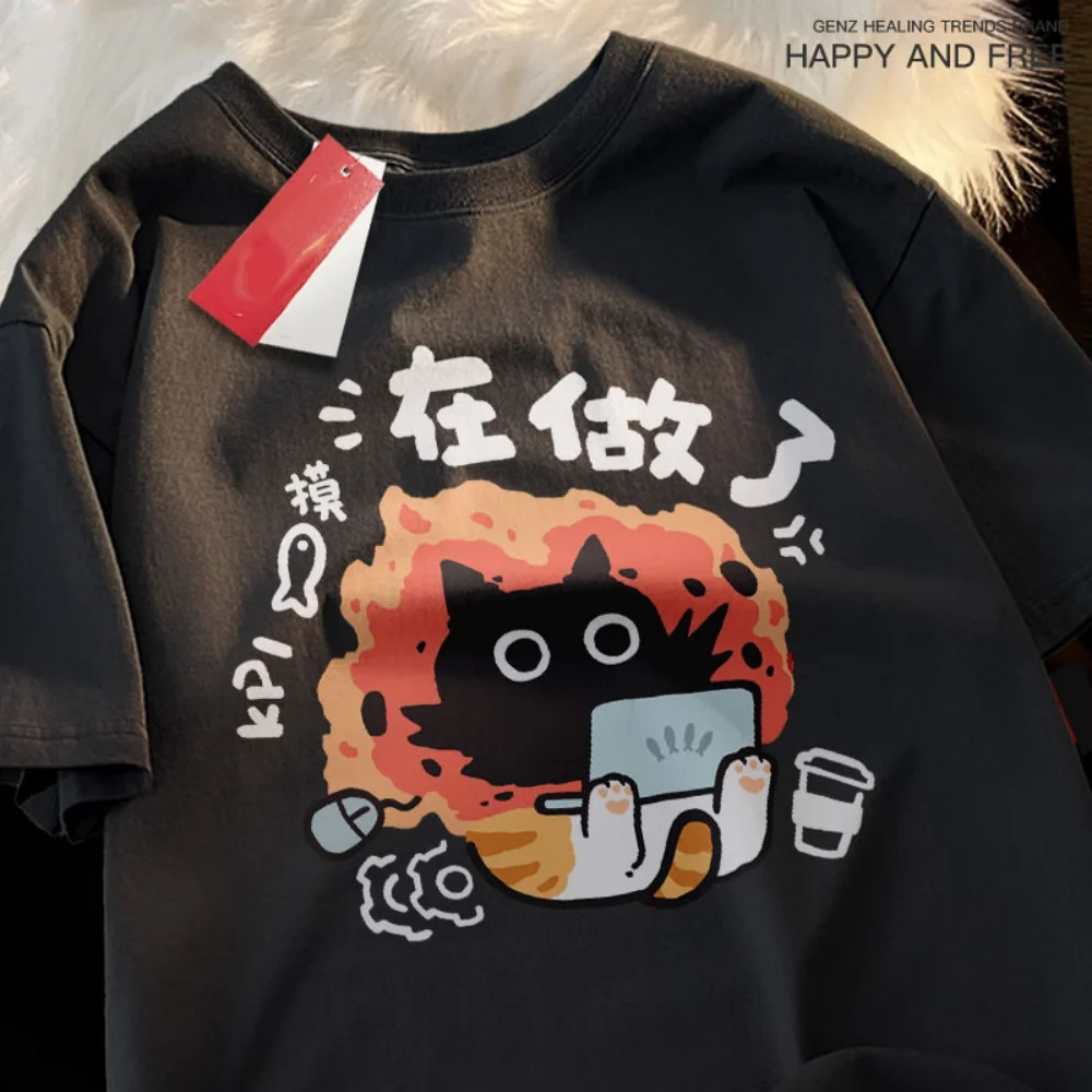 Unisex Summer 2025 New American Retro Trend, Round Neck Top, Casual Loose Fit, Stylish WearShort Sleeved T-shirt